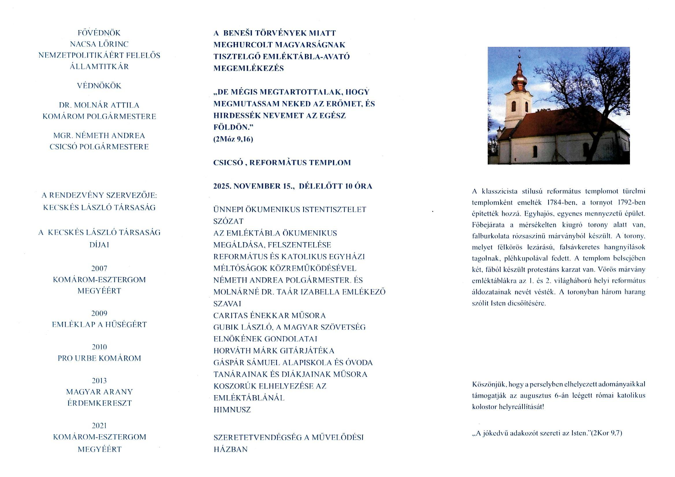 Fotka pre článok Meghívó emléktábla avató megemlékezésre Menšia fotka pre článok Meghívó emléktábla avató megemlékezésre