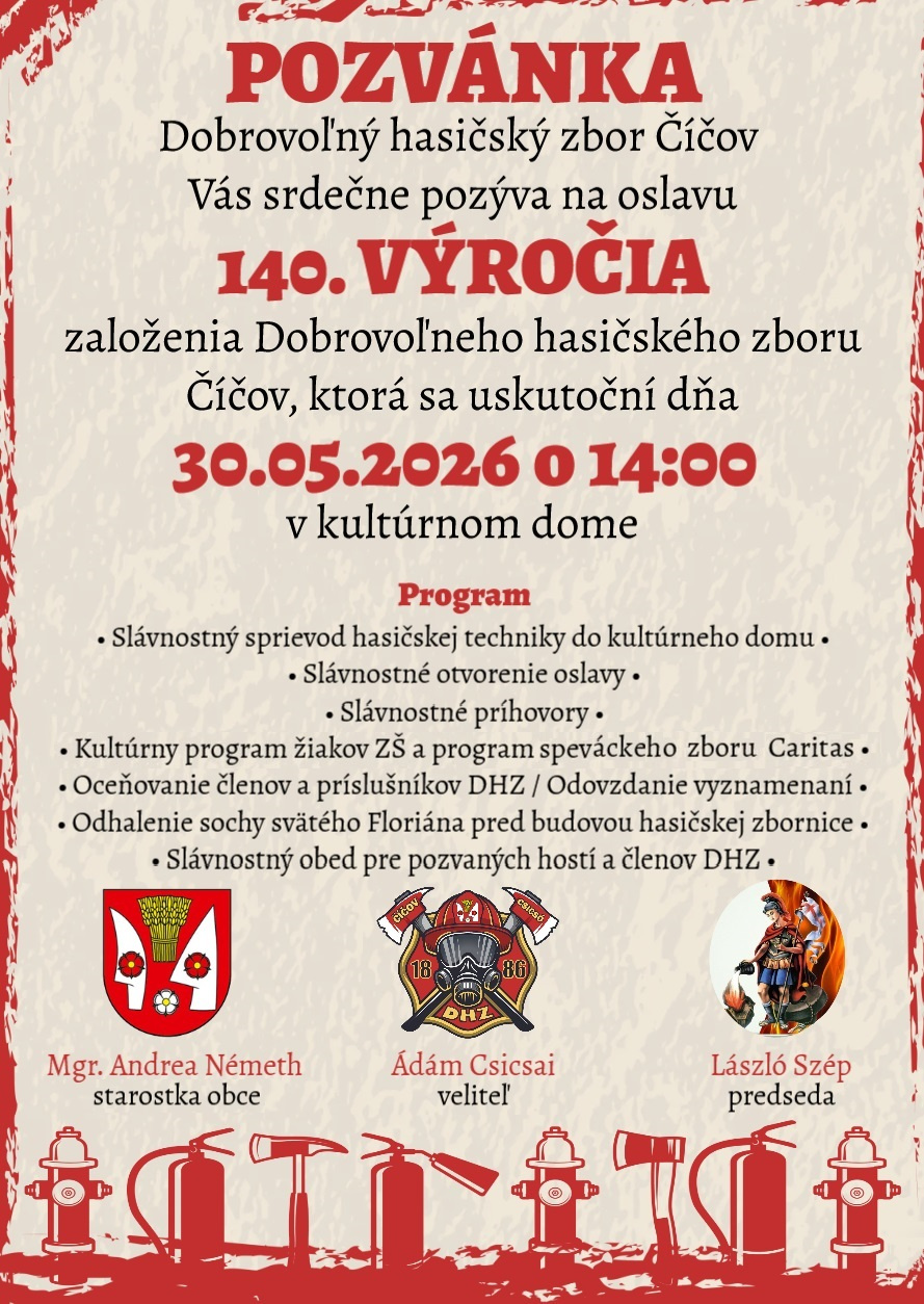 Pozvánka- 140. výročia založenia DHZ v Číčove